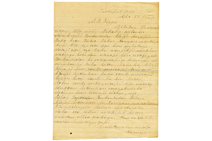 Moses Many Lightning Face to Stephen Riggs, April 17, 1865