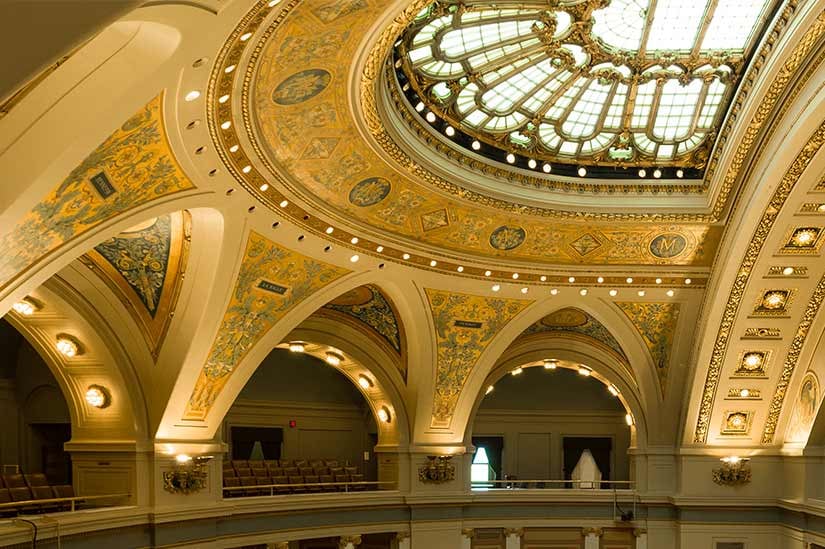 Gilbert commissioned approximately 60 works of art totaling about $300,000, or 7 percent of the $4.5 million project budget. Today, visitors can explore more than 150 stunning works of decorative and fine art throughout the building.