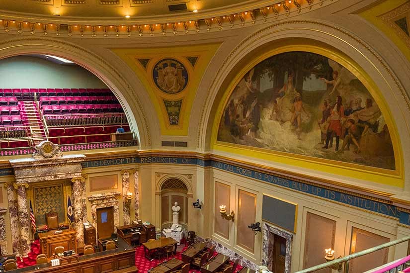 Architect Cass Gilbert designed the architecture of the Minnesota State Capitol in a Beaux Arts style, influenced by the very popular 1893 World’s Columbian Exposition in Chicago. He wanted the fine art to be as magnificent as the architecture.
