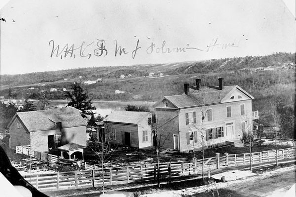 William Henry Carman Folsom arrived in the St. Croix River valley in 1846 at age 29. Born in Maine, Folsom left his family home at the age of 15 in search of work. He took jobs as a farm laborer, logger, camp cook, and dam builder before settling in Taylors Falls. For a brief period, the area was the northern white pine center of the world. There, Folsom hoped to take advantage of the thriving logging industry and establish himself as a businessman. Folsom invested in a variety of enterprises, including a hotel, a lumber mill, and the first bridge to cross the St. Croix River. He became a respected community leader, serving as a state representative and six-term state senator. Folsom died in 1900 at his home in Taylors Falls.