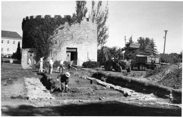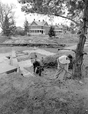 Initial archaeological research at the site of the original 1820s military installation was conducted by John Callendar, who was hired by MNHS with funding provided by the Minnesota Statehood Centennial Commission. At the time, the State Highway Department was proposing to build a multi-lane freeway through the site of the old fort. There was considerable public concern about the devastating effect the project would have on the historic site, and concerned citizens appealed to Russell Fridley, MNHS director, to save the old fort.