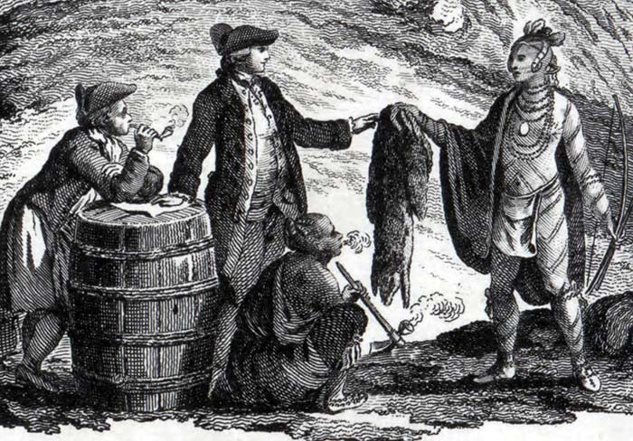 When the American Revolution erupted in 1775, trading routes across the Great Lakes area shifted. The war had a devastating effect for Native Americans. The formation of the Continental army set off a smallpox epidemic that swept across the continent. The Ojibwe had survived an outbreak in the 1750s, but still Ojibwe from Fond du Lac, Rainy Lake, Sandy Lake, and nearby were devastated by smallpox. Between 1,500 and 2,000 people died in one year alone. Such profound losses in numbers had an effect on Native Americans’ relationship to trade with Europeans. There were not enough people to hunt and meet their families’ needs without outside help. Some Native communities became more dependent on the trading economy as hunger forced them to rely on credit from traders to get them through periods of starvation.