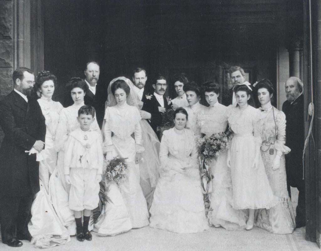 In 1901 Charlotte married George Theron Slade, who worked with the Erie Railroad. George was a Yale classmate of James Norman and Louis Hill. Theirs was the first of four family weddings at the Hill House. They were married in the Drawing Room with a wedding procession down the main staircase and hallway. Chrysanthemums from the greenhouses were used in the decorations.
