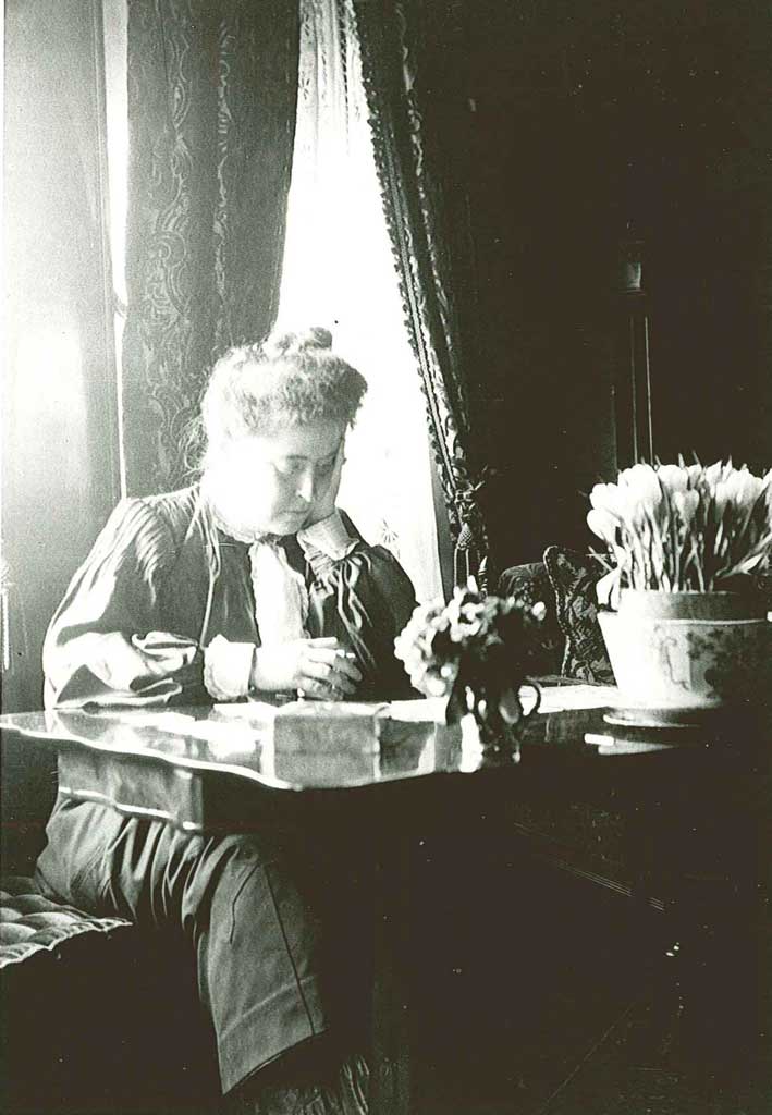Charlotte attended Visitation Academy with her sisters, and went with them in the fall of 1890 to the Misses Ely’s School in Brooklyn, graduating in spring 1893. She studied the violin as a child, and was considered more outgoing and gregarious than her sisters. She enjoyed playing sports, and many of the early round photographs show Charlotte entertaining friends at the Hill House.