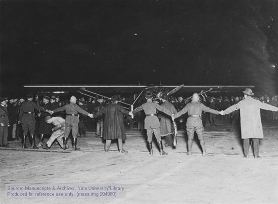 The excited crowd carried Lindbergh on their shoulders before a quick-thinking Frenchmen placed Lindbergh’s flight helmet on a nearby reporter, creating a distraction that allowed Lindbergh to escape to a nearby hangar where he was met by the American ambassador to France, Myron T. Herrick. The two drove through Paris and back to the ambassador’s residence, where Lindbergh got some sleep after being awake for 63 hours.