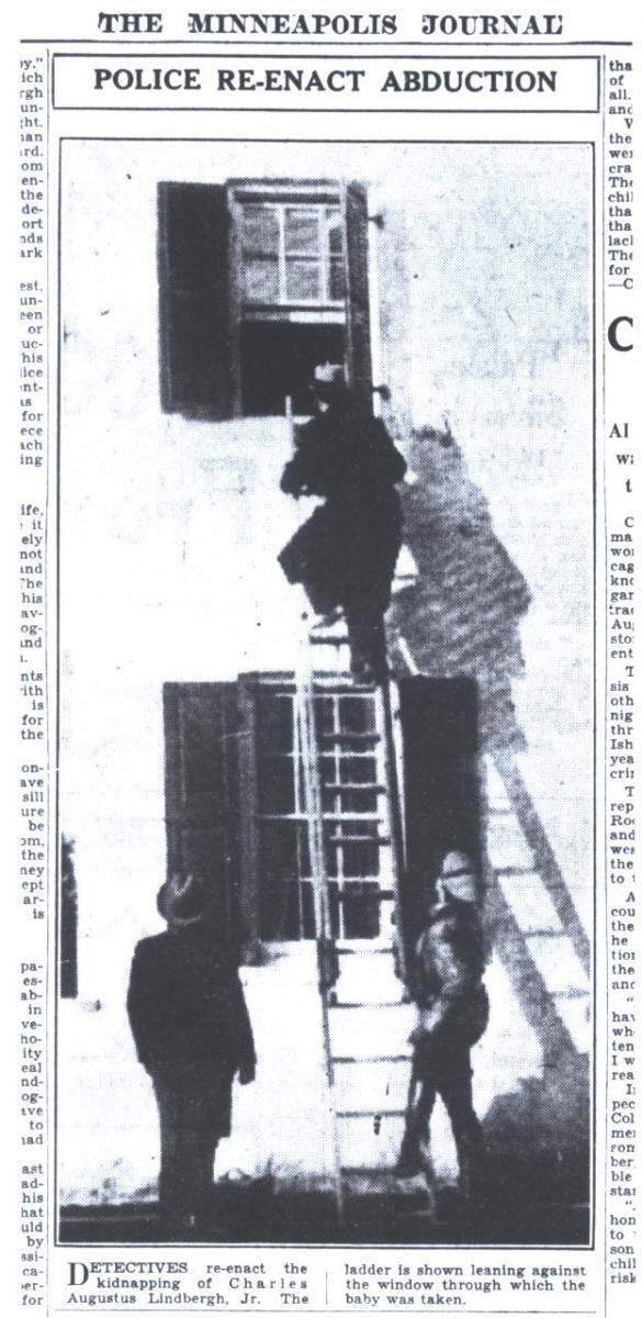 On the night of Mar 1, 1932, the baby was stolen from his crib in a second-floor bedroom, while both Lindberghs and several staff were elsewhere in the house. A ransom note, a broken ladder propped against the outside wall, and other clues were discovered. The Hopewell house was turned into the headquarters of a police investigation, and over the next few weeks numerous letters and tips poured in.