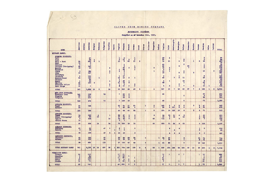 Oliver Iron Mining Company Nationality Statement. Chart. 1907.